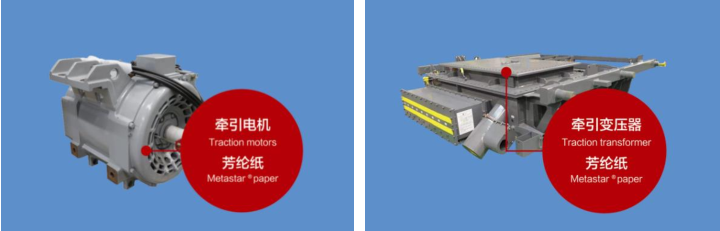 在轨道交通领域,民士达研发出芳纶云母纸材料,解决了电力机车运行过程中的牵引电机和牵引变压器局部过载问题。该材料采用有机与无机相结合的理念,由芳纶纤维提供机械强度,云母片提供耐高温和耐电晕性能,使得牵引电机和变压器在频繁过载的情况下仍旧保持内部绝缘系统安稳工作,从而保证电力机车的运行安全。