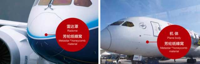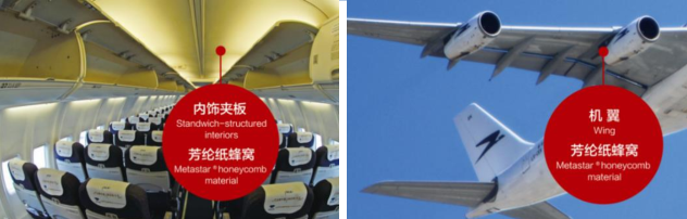 芳纶纸蜂窝芯材是国内芳纶纸市场的另一个重要应用领域。用芳纶纸经涂胶、叠合、热压、定型、固化等工艺制成的蜂窝芯材结构件具有轻质、高强、高模、隔音、隔热、阻燃等特性,已在飞机、高铁等航空航天和轨道交通领域的次受力结构和内饰件中得到广泛应用。