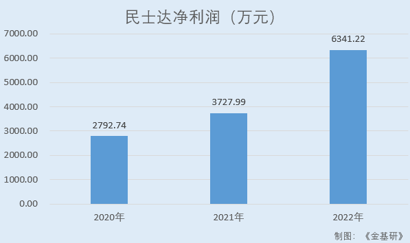 同期,民士达的净利润分别为2792.74万元、3727.99万元、6341.22万元,2021-2022年分别同比增长33.49%、70.10%。