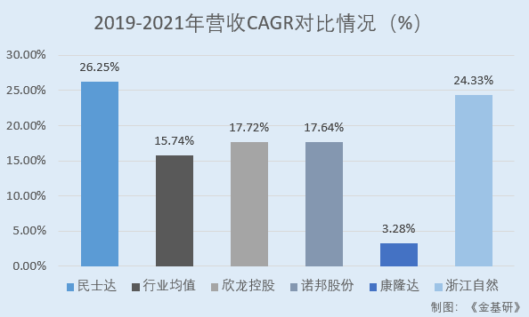 经金基研计算,2019-2021年,上述四家民士达同行业可比公司的营收CAGR均值为15.74%。