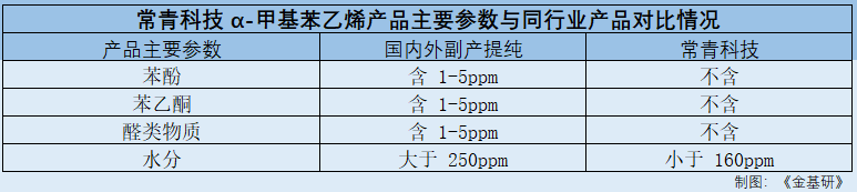 正如常青科技通过技术创新成功实现了高品质二乙苯等关键中间体的自给自足,常青科技已于2022年下半年建成的异丙苯中间体生产装置将进一步保障其关键中间体的供应,降低α-甲基苯乙烯产品成本、提升供应能力,从而加快产品的应用推广。