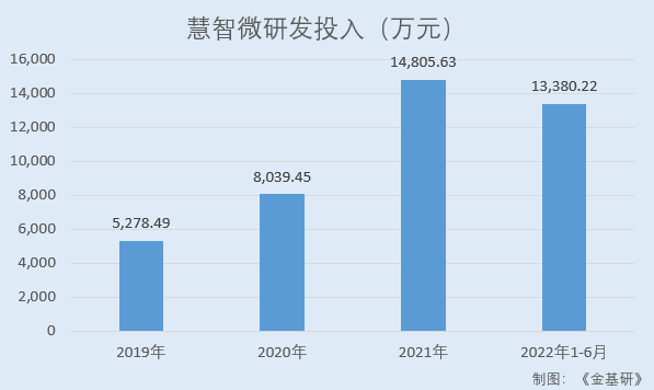 2019-2021年及2022年1-6月,慧智微研发投入分别为5,278.49万元、8,039.45万元、14,805.63万元、13,380.22万元,累计研发投入4.15亿元,占营业收入的比例为42.03%。