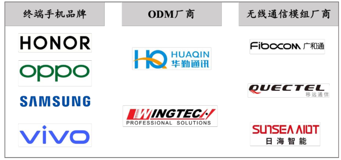 目前,慧智微的终端客户包括智能手机品牌客户、移动终端设ODM客户及物联网模组客户等,具体为vivo、0PPO、闻泰科技、华勤通讯、翱捷科技、移远通信、广和通、日海智能等。
