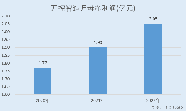 同期,万控智造实现归母净利润分别为1.77亿元、1.90亿元、2.05亿元,年均复合增长率为7.55%。