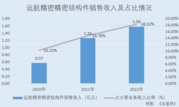 同期,远航精密的精密结构件销售收入分别为0.57亿元、1.26亿元、1.58亿元,占主营业务收入的比例分别为10.25%、14.78%、18.32%。