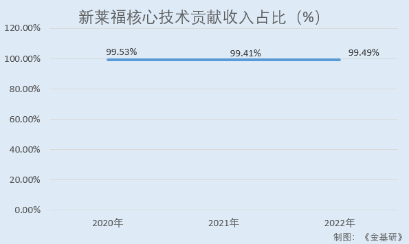 2020-2022年,新莱福应用核心技术实现的产品销售收入分别为5.96亿元、7.78亿元、7.11亿元,占营业收入的比例分别为99.53%、99.41%、99.49%。