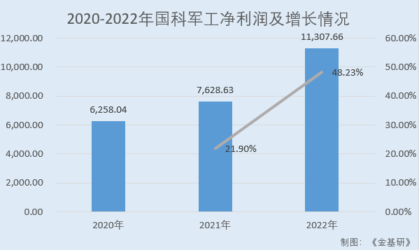 同期,国科军工净利润分别为6,258.04万元、7,628.63万元、11,307.66万元,2021-2022年分别同比增长21.90%、48.23%。