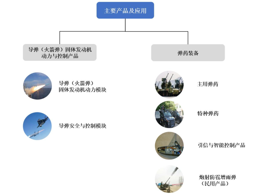 自成立以来,国科军工一直深耕于国防科技工业领域,专注于导弹(火箭弹)固体发动机动力与控制产品及弹药装备的研发、生产与销售,以军用产品为主,辅以少量民用产品业务。