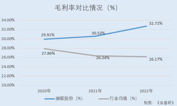 同期,溯联股份同行业可比公司川环科技、鹏翎股份、标榜股份的毛利率均值分别为27.86%、26.34%、26.17%。