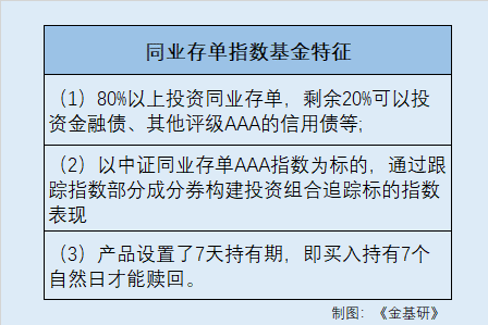 例如,同业存单指数基金中的富国中证同业存单AAA指数7天持有期、南方中证同业存单AAA指数7天持有等基金,跟踪的指数就是中证同业存单AAA指数。该类同业存单指数基金具有以下特征: