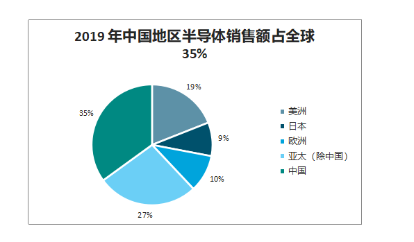 据智研咨询,2019年,全球半导体销售额为361亿美金,我国半导体销售额占全球的35%。