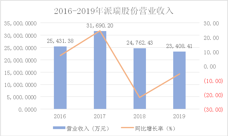 在营收质量上,2016-2019年,派瑞股份的营业收入分别为25,431.38万元、