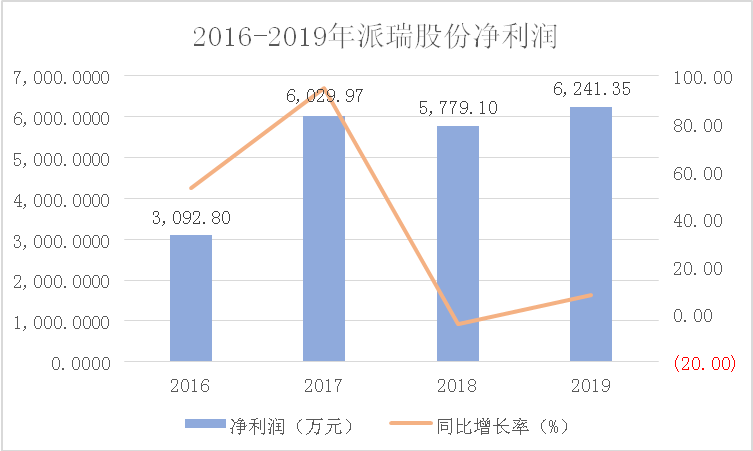 同期,派瑞股份的净利润分别为3092.80万元、6,029.97万元、5,779.10万元、6,241.35万元。