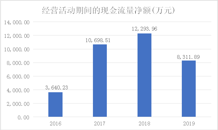 2016-2019年的经营活动期间的现金流量净额分别为3,640.23万元、10,698.51万元、12,293.96万元、8,311.89万元,其现金流表现良好。
