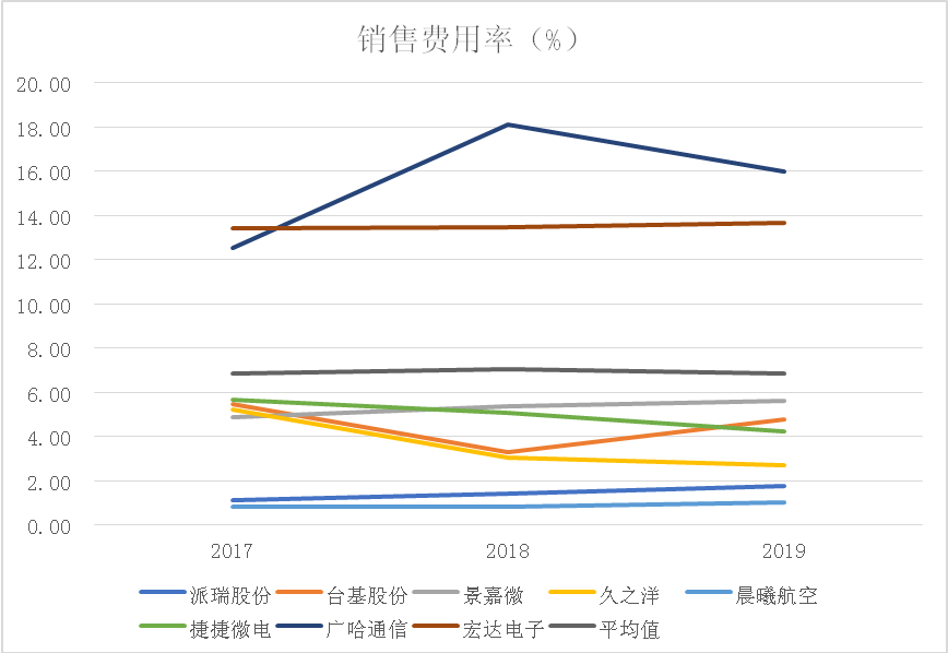 对比7家同行业上市公司,销售费用率的平均值分别为6.86%、7.04%、6.88%,高于派瑞股份。