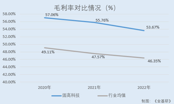 据东方财富choice数据,2020-2022年,固高科技的毛利率分别为57.06%、55.76%、53.67%。