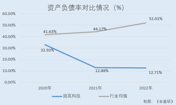 据招股书,2020-2022年,固高科技经营活动现金流量净额分别为9,634.56万元、5,099.46万元、5,748.92万元;货币资金分别为1.89亿元、2.30亿元、2.85亿元;资产负债率分别为32.93%、12.88%、12.71%。