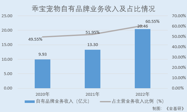 近年来,乖宝宠物的自有品牌业务收入持续快速增长,成为其一大竞争优势。
