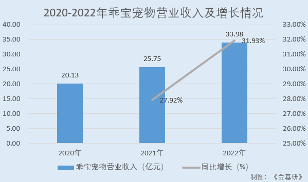 2020-2022年,乖宝宠物的营业收入复合增长率为29.91%。