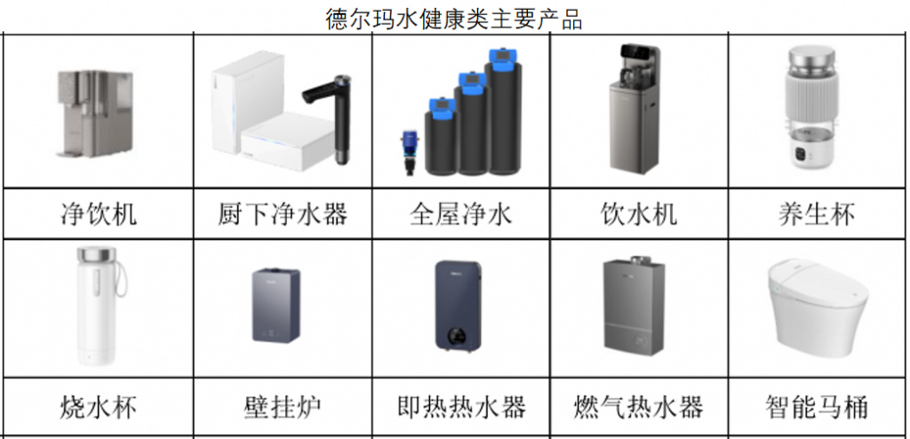 水健康类业务方面,公司产品主要包括净水类产品、滤芯、智能马桶类产品及热水器类产品。