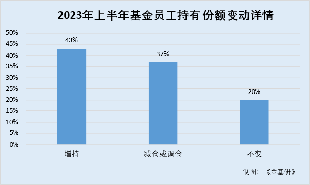 Choice数据显示,2023上半年,基金公司员工所持有基金份额合计超126亿份,较2022年年底上涨16.77%。在数量上,除次新基金外,其中43%的基金产品受到基金员工增持;37%的基金产品遭到基金员工的减持或调仓;20%的基金产品,基金员工的持有比例不变。