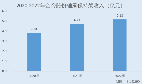 2020-2022年,金帝股份轴承保持架收入分别为3.85亿元、4.73亿元、5.18亿元,占当期主营业务收入的比例分别为66.79%、59.43%、53.04%。近三年,金帝股份轴承保持架收入年均复合增长率为16.04%。