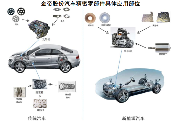 依托下游庞大的汽车消费市场以及快速发展的新能源汽车增量市场,汽车精密零部件业务成为金帝股份主营业务的重要组成部分。