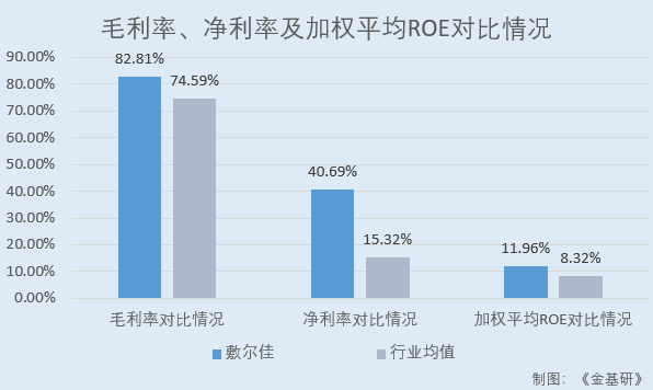 除此之外,2023年1-6月,敷尔佳毛利率、净利率、加权平均净资产收益率均高于行业均值,盈利能力强劲。