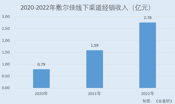 截至2022年末,敷尔佳线下渠道经销商覆盖商超及化妆品专营店约2.5万家、连锁药房约2.1万家,覆盖规模大,且仍在继续保持一定增长。线下经销渠道,进一步增强经销商合作黏性,快速拓展实体渠道,成为线下收入的新增长点。