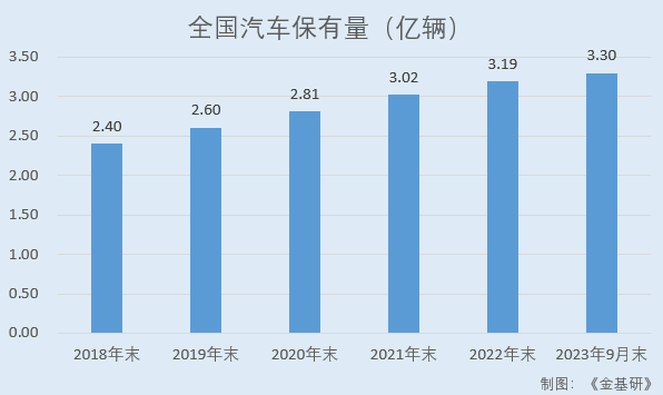 据公安部交通管理局数据,2018-2022年各期末,全国汽车保有量分别为2.40亿辆、2.60亿辆、2.81亿辆、3.02亿辆、3.19亿辆。
