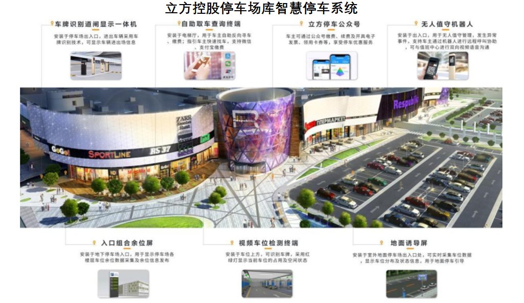 在智慧停车系统板块,立方控股的智慧停车系统通过软硬件结合,全面覆盖停车场库与城市级停车,能够适配城市停车各类型场景。