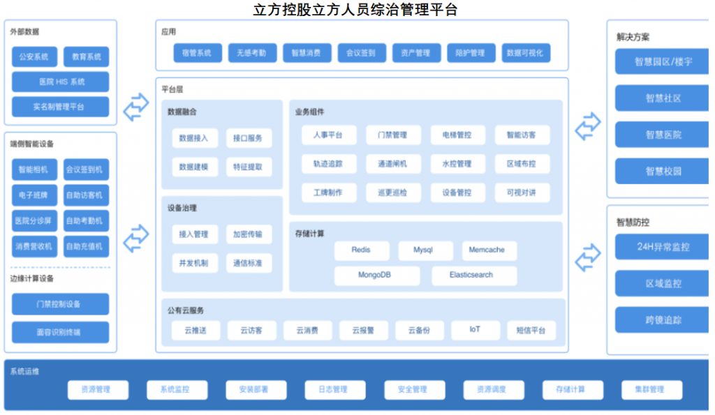 在智慧门禁系统板块,立方控股以自研的立方人员综治管理平台贯穿各分支模块,通过多维度多品种的端侧设备介入,在收集终端数据的基础上对底层各类事件进行归并、关联和融合处理,为各类业务场景提供对应的系统支撑。立方人员综治管理平台可应用在智慧园区及楼宇、智慧社区、智慧医院、智慧校园等场景,提供基于“人行”的全方位场景化综合治理管理控制服务。