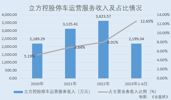 2020-2022年及2023年1-6月,立方控股停车运营服务收入分别为2,189.29万元、3,125.41万元、3,623.57万元、2,199.34万元,占主营业务收入的比例分别为5.19%、6.84%、8.01%、12.65%。