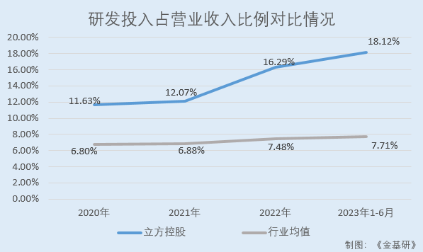 2020-2022年及2023年1-6月,立方控股上述四家同行业可比公司的研发投入占营业收入比例均值分别为6.80%、6.88%、7.48%、7.71%。