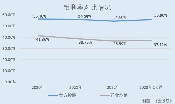 从毛利率情况看,立方控股的综合毛利率大幅高于行业均值,盈利能力突出。