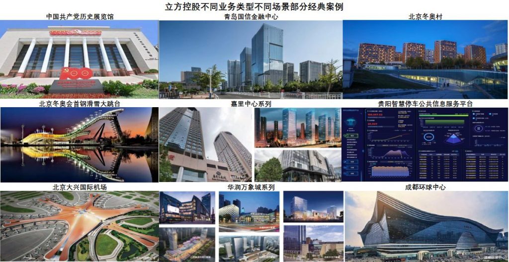 值得关注的是,立方控股已在行业内积累众多各类型各场景经典案例,包括中国共产党历史展览馆、青岛国信金融中心、北京大兴国际机场、北京冬奥村、北京冬奥会首钢滑雪大跳台、嘉里中心系列、贵阳智慧停车公共信息服务平台、成都环球中心、华润万象城系列、恒隆系列、宝龙系列、新浪总部、网易总部、北京市委、浙江省政府、杭州西湖风景区等。