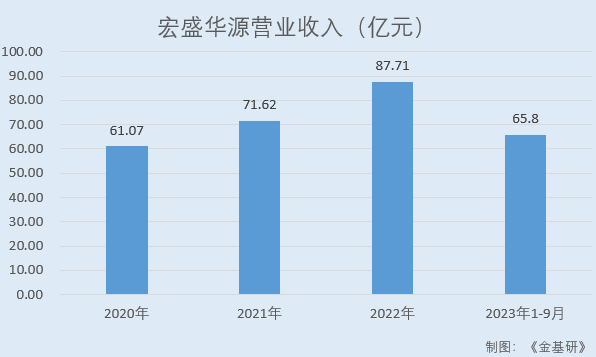 2020-2022年及2023年1-9月,宏盛华源营业收入分别为61.07亿元、71.62亿元、87.71亿元、65.80亿元,净利润分别为5.31亿元、2.11亿元、1.66亿元、0.89亿元。其中,2020-2022年,宏盛华源营收复合增长率达19.84%。