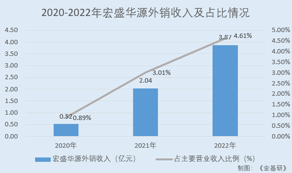 2020-2022年,宏盛华源外销收入分别为0.52亿元、2.04亿元、3.87亿元,占主营业务收入的比例分别为0.89%、3.01%、4.61%。