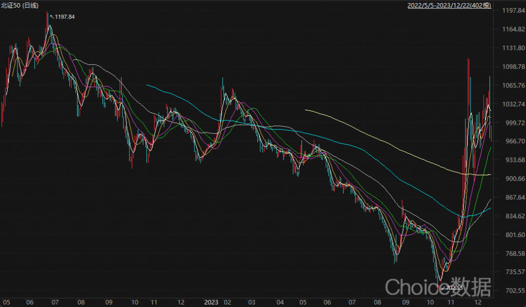 值得注意的是,11月22日,北证50指数收992.82点,其今年2月初以来震荡下行造成的“失地”或已在一定程度上得到修复。但若相对2022年年中时的高位,北证50指数或还存在一定上行空间。