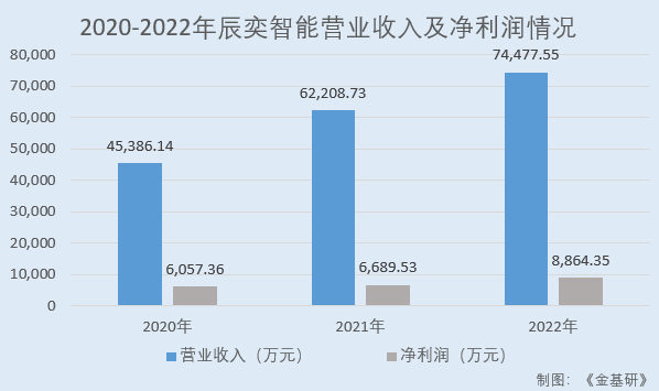 据招股书,2020-2022年,辰奕智能营业收入分别为3.28亿元、3.54亿元、4.10亿元,复合增长率为28.10%。同期,辰奕智能净利润分别为6,229.68万元、6,745.84万元、7,225.29万元,复合增长率为20.97%。