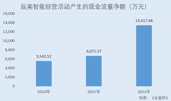 2020-2022年,辰奕智能经营活动产生的现金流量净额分别为5,542.52万元、6,671.37万元、13,417.68万元。