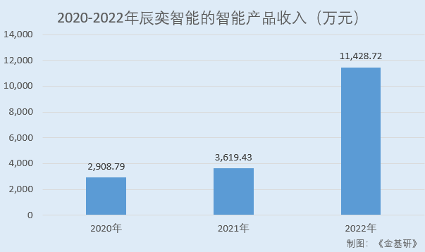 2020-2022年,辰奕智能来自智能产品的收入分别为2,908.79万元、3,619.43万元、11,428.72万元,年均复合增长率达98.22%,占各期主营业务收入的比例分别为6.53%、5.96%、15.74%。