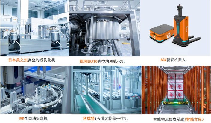 以芭薇股份五大生产基地之一——民科园创新中心&智慧工厂为例,其集国家级研发实验室、高标准检测中心、智能化生产车间、现代化办公楼及生活区为一体,并在全区以中国电信5G技术覆盖,实现了各个工厂、各项设备的智能串联,一举打通客户沟通、研发、生产、包装、物流、直播、管理、安全监控等各个环节的流程,成为“智能质造” 的典范工厂。