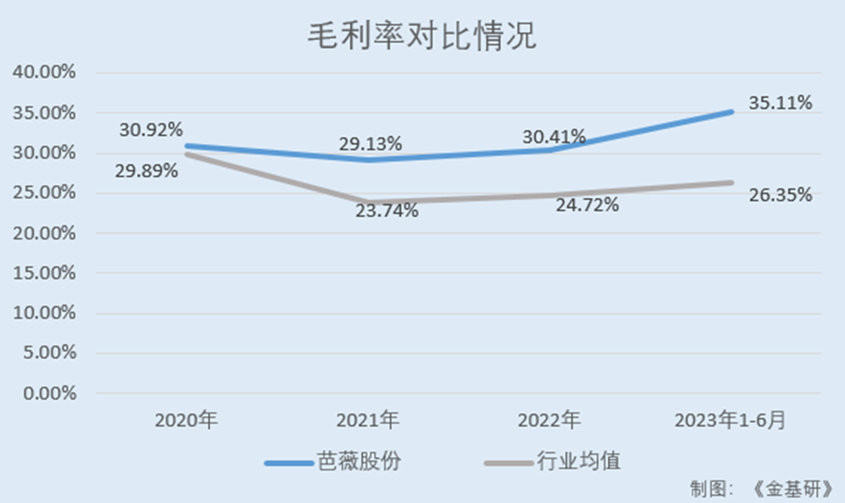 毛利率方面,一般而言,化妆品代工厂毛利率普遍在10%-35%。2020-2022年及2023年1-6月,芭薇股份的毛利率分别为30.92%、29.13%、30.41%、35.11%,处于行业中偏上水平。