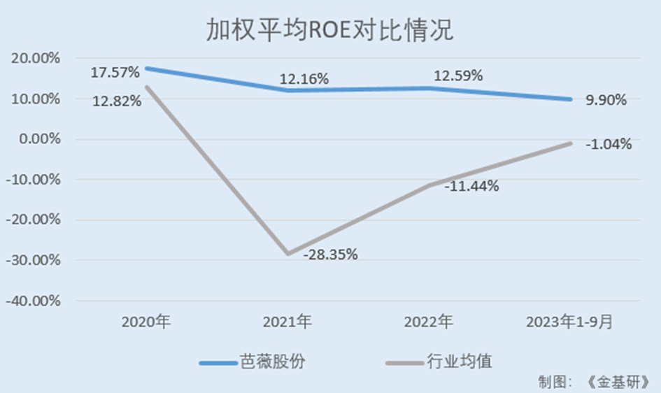 同期,芭薇股份同行业可比公司青松股份、嘉亨家化、伊斯佳、科玛股份的加权平均ROE均值分别为12.82%、-28.35%、-11.44%、-1.04%。其中,2023年1-9月,伊斯佳、科玛股份未披露财务数据,仅比较青松股份和嘉亨家化的加权平均ROE均值。