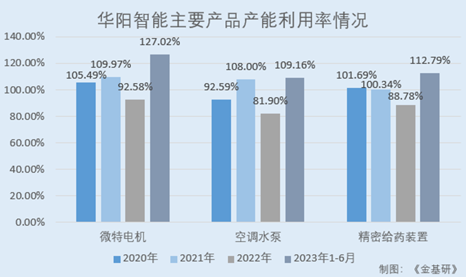 据招股书,2020-2022年及2023年1-6月,华阳智能微特电机产能利用率分别为105.49%、109.97%、92.58%、127.02%;空调水泵产能利用率分别为92.59%、108.00%、81.90%、109.16%;精密给药装置产能利用率分别为101.69%、100.34%、88.78%、112.79%。