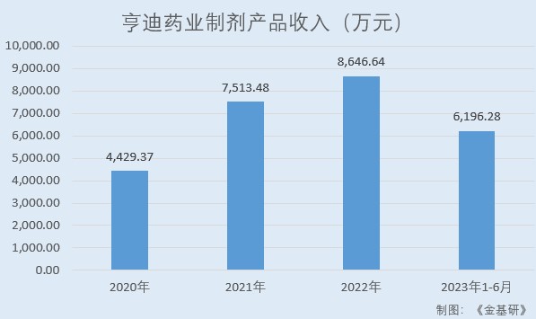 2020-2022年,亨迪药业制剂产品收入分别为4,429.37万元、7,513.48万元、8,646.64万元,年均复合增长率为39.72%。2023年上半年,亨迪药业制剂产品收入为6,196.28万元。