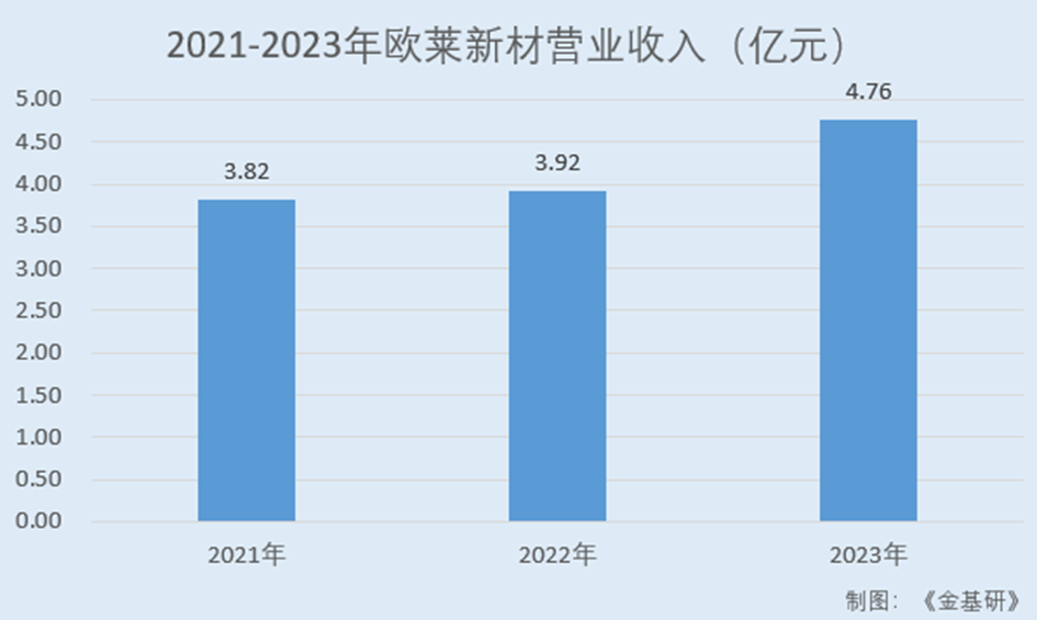 2021-2023年,欧莱新材营业收入分别为3.82亿元、3.92亿元、4.76亿元,年均复合增长率为11.60%。