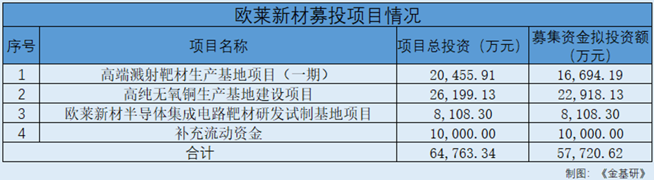 “高纯无氧铜生产基地建设项目”总投资2.62亿元,拟使用募集资金2.29亿元。该项目建成投产后,欧莱新材将自主生产加工高纯铜锭、高纯无氧铜板和铜管,实现高导电率、低氧含量高纯铜的量产供货,在现有高性能溅射靶材的基础上向上游延伸产品价值链,保障高纯铜持续稳定的供应,进一步提高欧莱新材溅射靶材质量的稳定性和一致性。