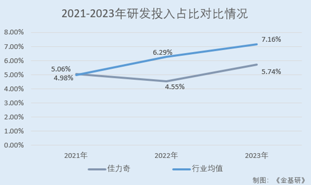 2021-2023年及2024年1-6月,佳力奇研发投入分别为2,128.86万元、3,725.62、3,315.85万元、1,750.55万元,研发投入占营收比分别为4.98%、6.29%、7.16%、6.49%。2021-2023年,佳力奇研发投入复合增长率达到24.80%。